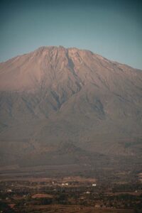 Today’s trek is shorter but steeper, moving from forest into moorland. The vegetation becomes thinner, and the views open up dramatically. Along the way, you will see the impressive Meru Crater and Ash Cone.